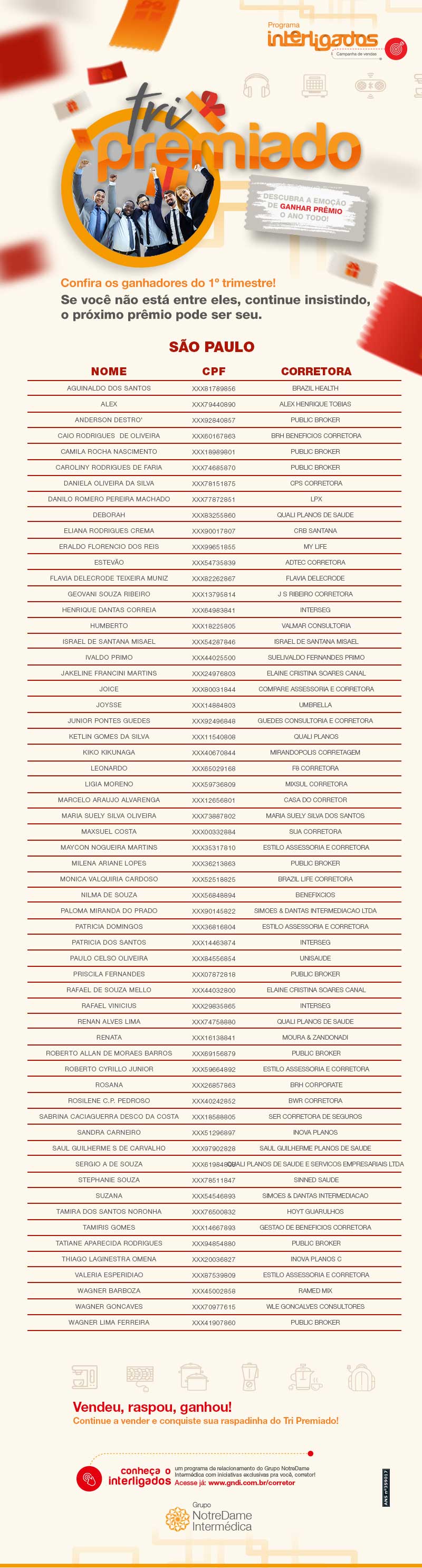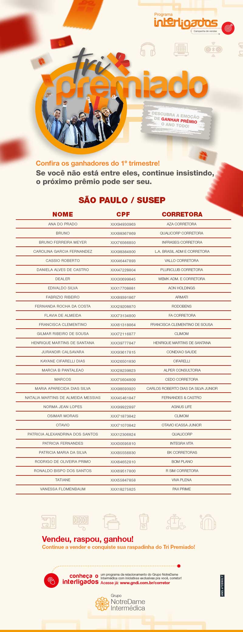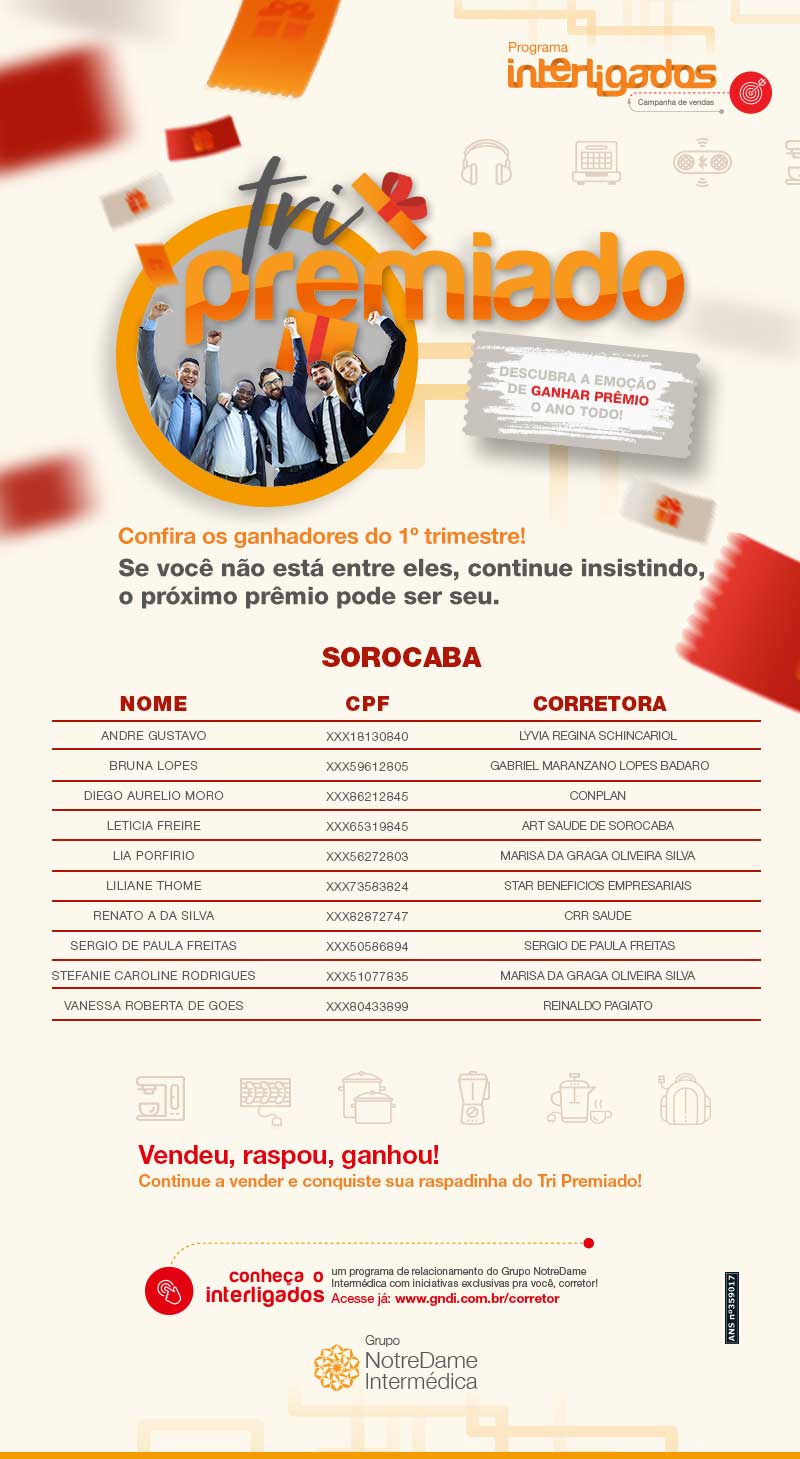 Confira a lista de ganhadores do 1º trimestre