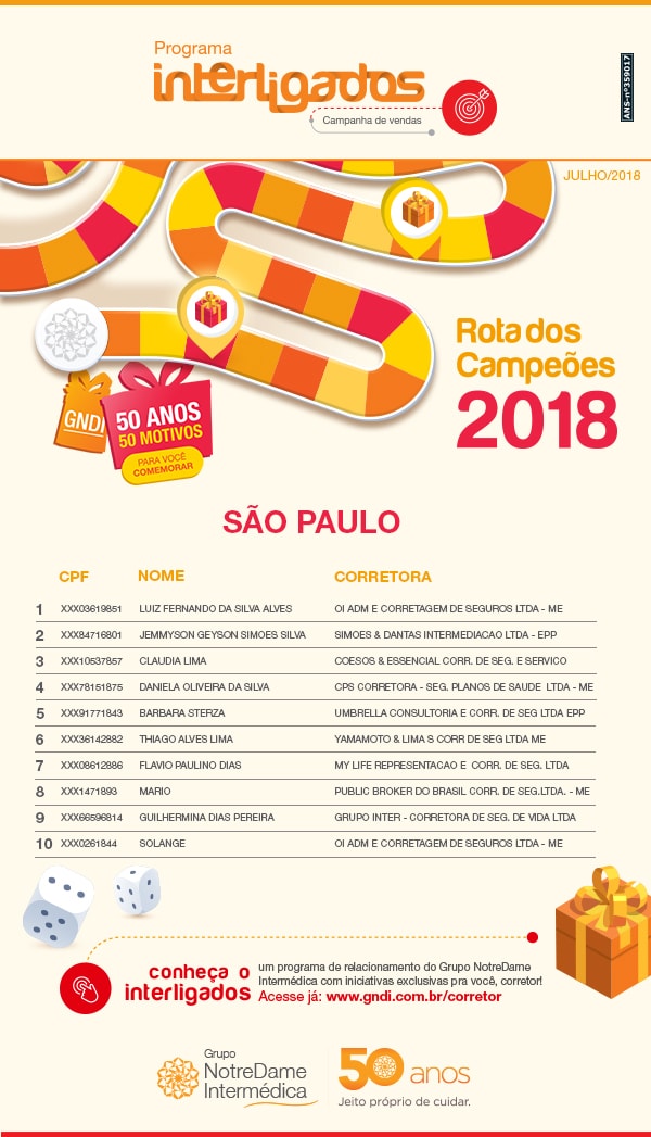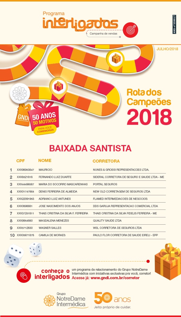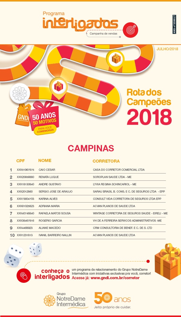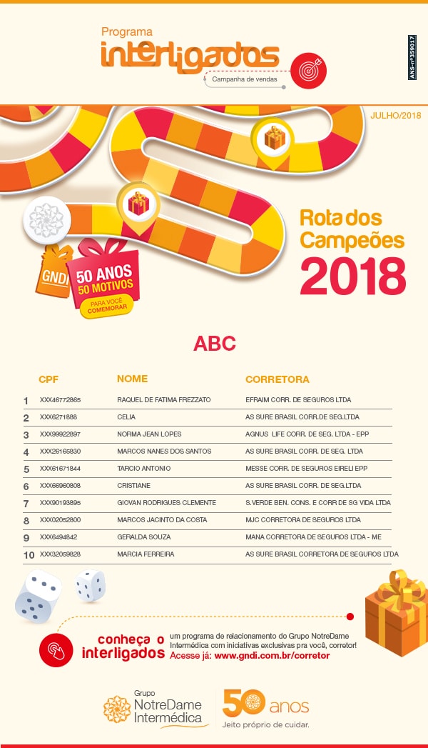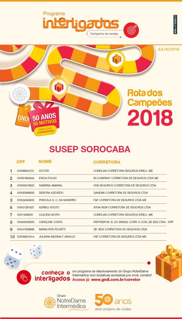 Ranking Atual - Corretor - Rota dos Campeões 2018