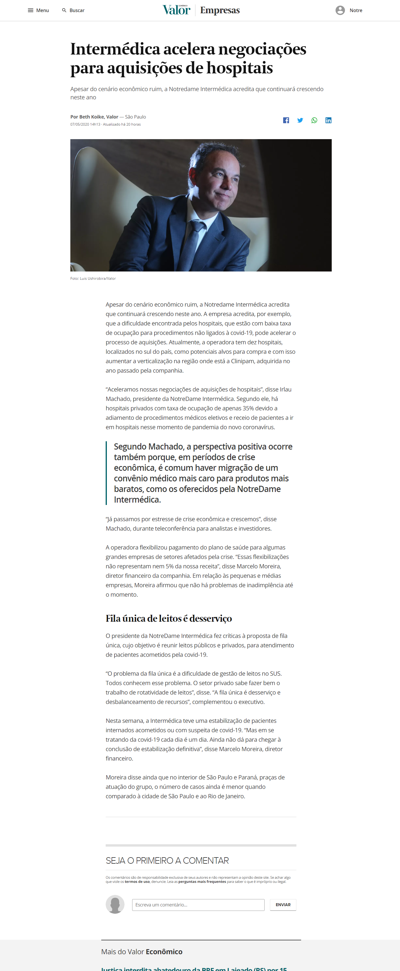 Intermédica vê aceleração em oportunidades de aquisições em crise de Covid-19