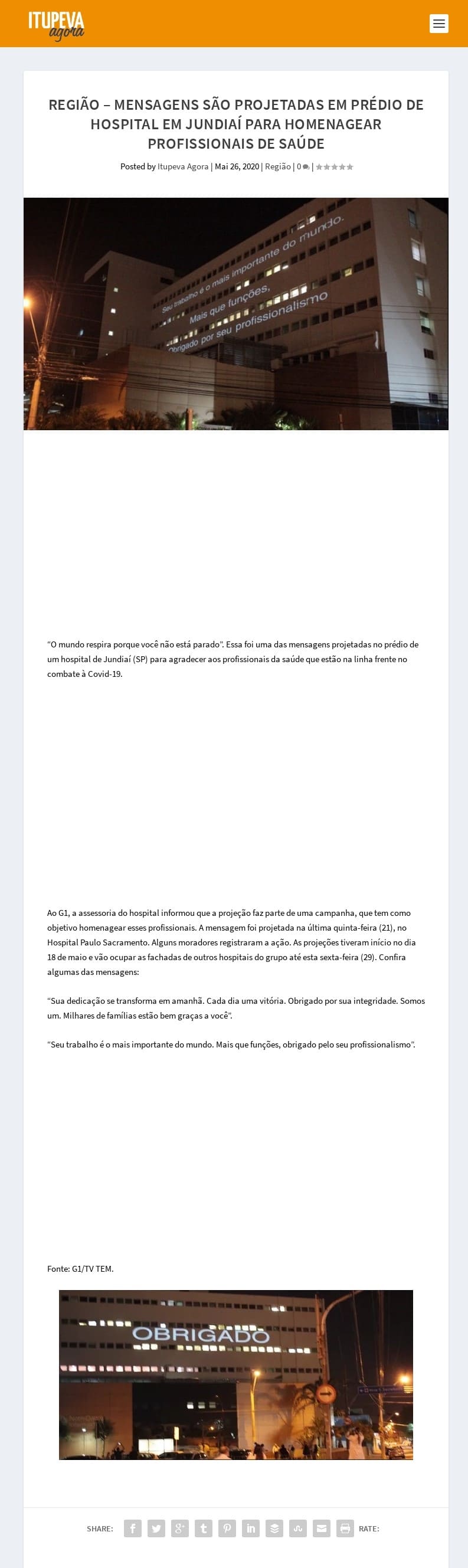 Mensagens são projetadas em prédio de Hospital em Jundiaí para homenagear profissionais de saúde