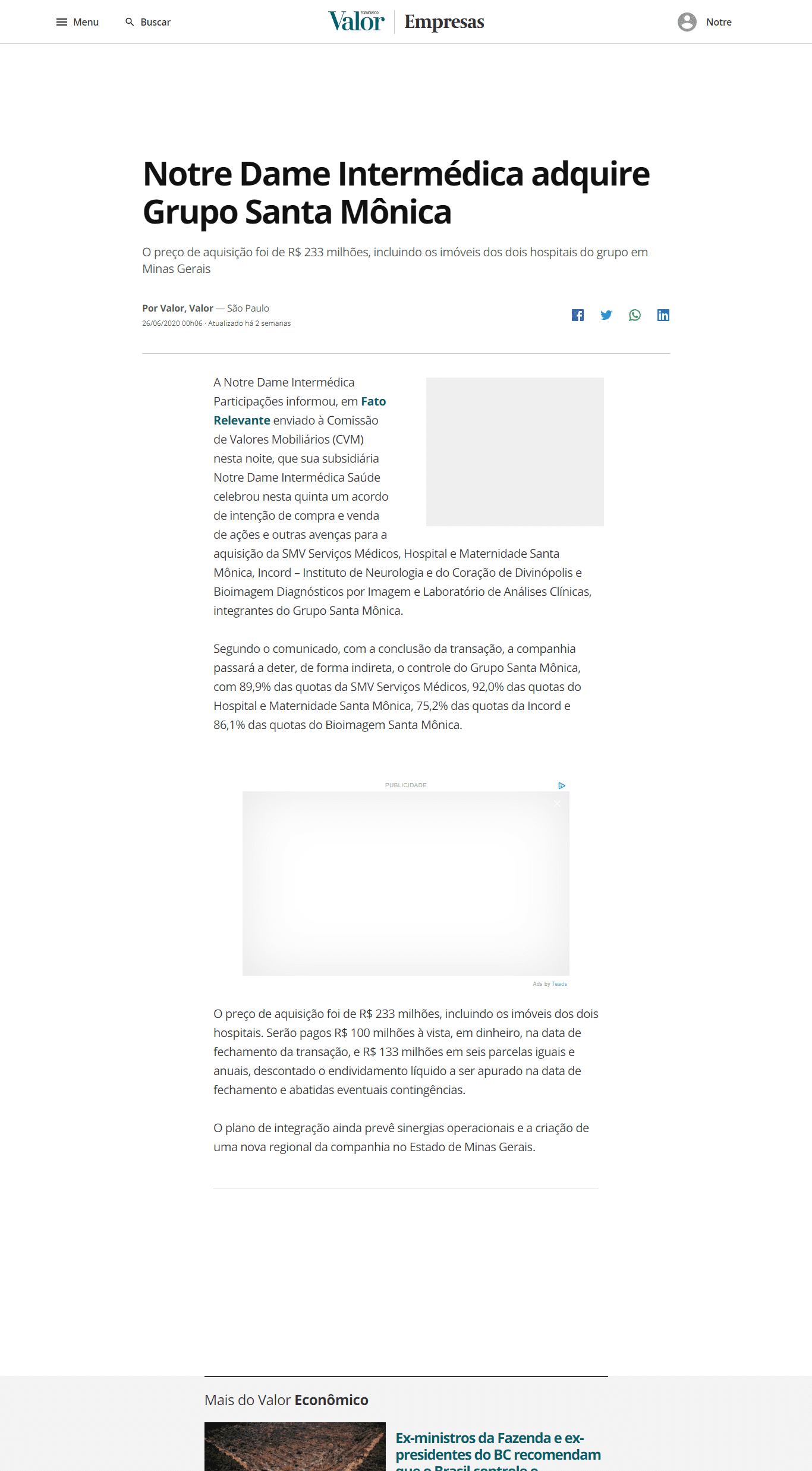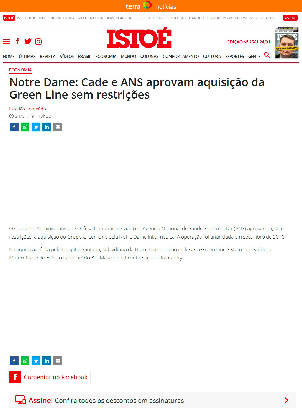 Notre Dame fecha aquisição de 100% do Grupo Ghelfond por R$ 240 milhões.