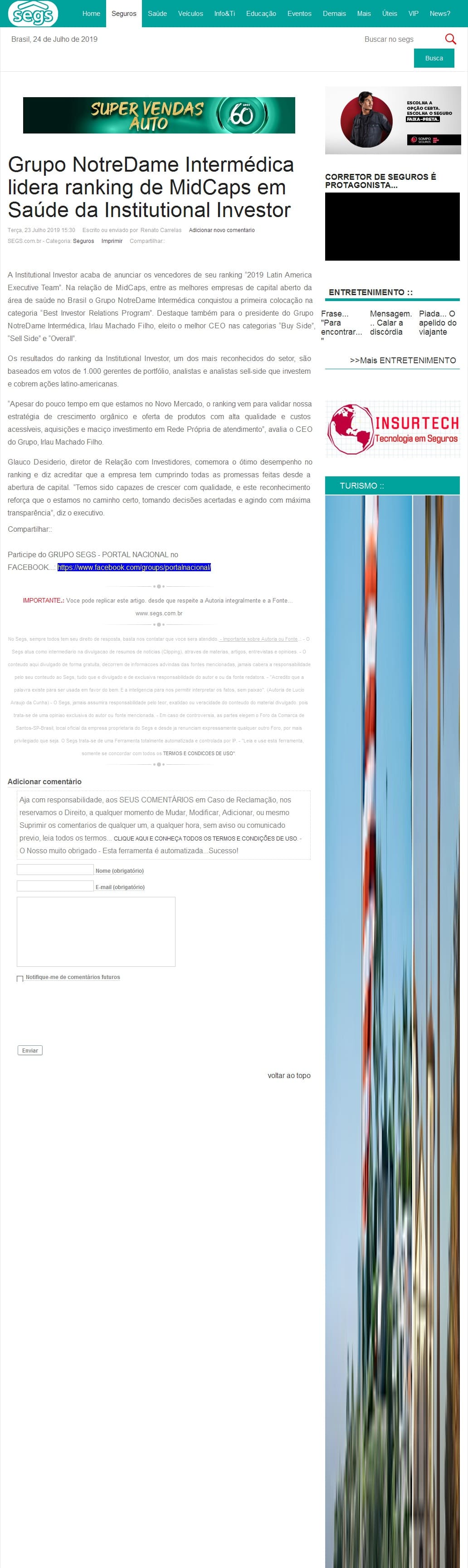 Grupo NotreDame Intermédica lidera ranking de MidCaps em Saúde da Institucional Investor.