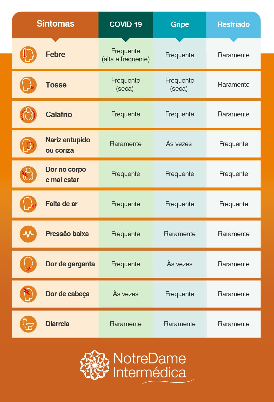 Confira a tabela e saiba diferenciar os sintomas de cada doença.